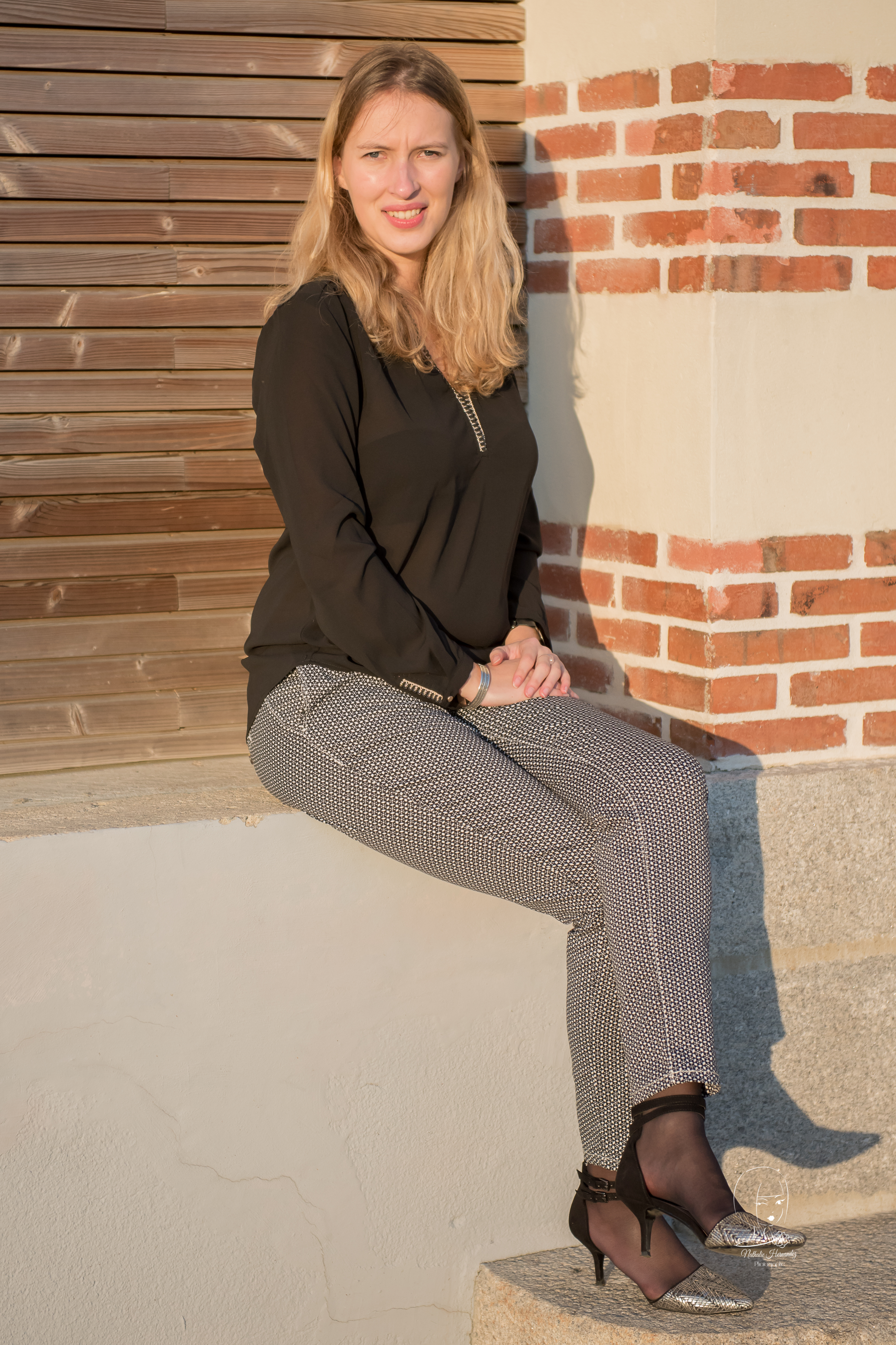 Pour ce dernier look, je vous montre une pièce pour laquelle je de suite craqué, le pantalon imprimé. Pas forcément simple à porter, pourtant je l’adore. Je me sens chic et en même temps très féminine même s’il s’agit d’un pantalon. accessoirise avec un chemisier Garance Paris également trouvé chez Dé-K-Lé, la doudoune vient de chez Captain Tortue, et les escarpins viennent de chez Zara.
