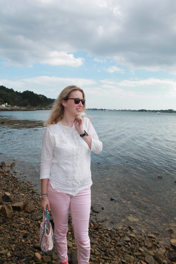 10 jours sans venir par ici, c’est beaucoup trop! Mais mes partiels ne sont pas terminés, il m’en reste encore un demain et j’avais bien trop envie de vous montrer un look printanier. Parfois il y a du soleil en Bretagne. Je critique mais je suis bien contente de rester ici, en fait. Ma vie change, évolue, bref je vous en reparle très vite. Je ne serais pas très bavarde aujourd’hui, je vous laisse avec les photos de ce look et deux nouveautés dont cette blouse brodée H&M et ce pantalon Bonobo. Idéal pour les deux tendances phares de cet été, à savoir le pastel et le fluo. Une association parfaite pour donner un coup de punch à une tenue, vous ne trouvez pas ?