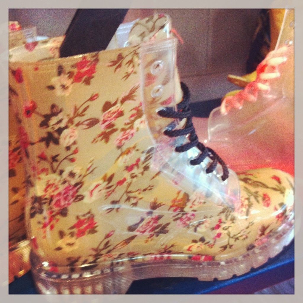 On continue dans la catégorie des chaussures en plastique, avec cette fois-ci une paire en plastique façon Doc Martens. Quand je vous disais, qu’il y avait du lourd, je ne vous ai pas menti les girls. Imprimé à fleurs ou transparente avec une semelle fluo, lesquelles préférées-vous ? 35$ pour ce bout de plastique, je préfère quand même mes chaussures de la marque Melissa. Certes ce sont des chaussures en plastiques, mais elles, au moins sont jolies.