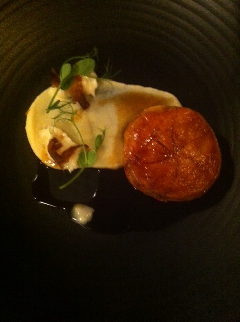 Slow cooked beef short rib pithivier, fresh dates, dolce gorgonzola, La purée est délicieuse, le boeuf est cuit à merveille. Les proportions sont équilibrées, et je n’ai qu’une hâte c’est que le 4ème plat arrive.