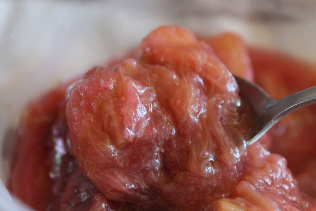 Et je confirme, c’est bon. La sienne était bien fondante, j’ai fait cuire la mienne un peu plus longtemps afin d’avoir quasiment la texture d’une compote avec morceau. Résultat, depuis hier je ne pense qu’à une chose : retourner au marché dimanche prochain et acheter deux bottes de rhubarbe.