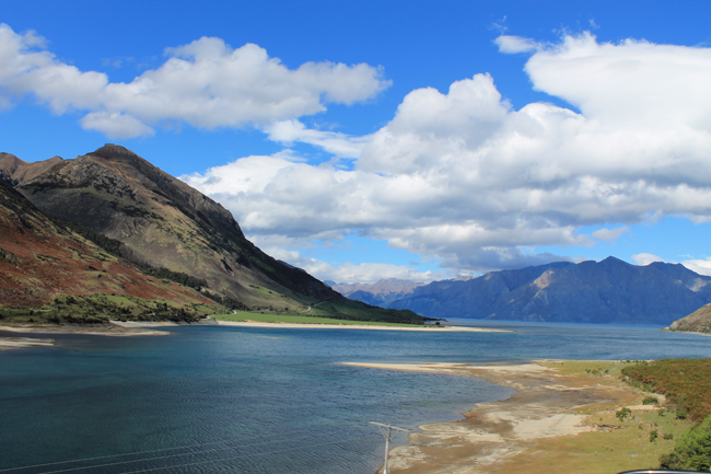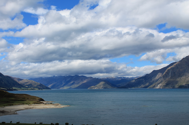 Jour 6 : Idéalement nous avions prévu de faire Fox Glacier ce jour-là. Malheureusement, à 9h nous partons sous la pluie. Nous nous arrêtons à Hokitika pour faire le plein d’essence et acheter deux bijoux en Paua alors que la ville est réputée pour la Jade!! A défaut de pouvoir découvrir le glacier, nous nous arrêtons devant un lookout pour déjeuner dans notre van. Il pleut tellement que ça ne vaut pas le coup, on en profite donc pour rouler et on décidera de s’arrêter à Wanaka. Après une recherche sur Campermate (j’y reviendrai dans un article) nous nous sommes arrêtés au Camping Aspiring Holiday Park. Le meilleur des campings que nous aurons testés pendant ce road trip. Des aménagements de qualité, des douches chaudes et propres et surtout deux SPA et un sauna. Les SPA étant disponibles nous avons profité de cet aménagement pendant 30 minutes sans que personne viennent utiliser le second. Après une journée aussi pluvieuse, ça fait du bien de se détendre avant un bon resto. Bien avant de partir, Jo avait envie d’aller à Wanaka pour manger au Bistro Gentil. Je ne vous en dit pas plus car je compte vous écrire un article sur cette adresse coup de coeur. Ce que je peux vous dire, c’est que Wanaka est surnommé et petit « Queenstown » et que cette ville a un charme fou. Un joli lac bordé de montagnes enneigées et de jolies maisons.