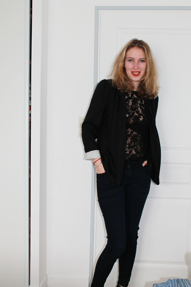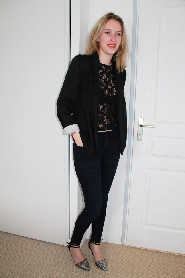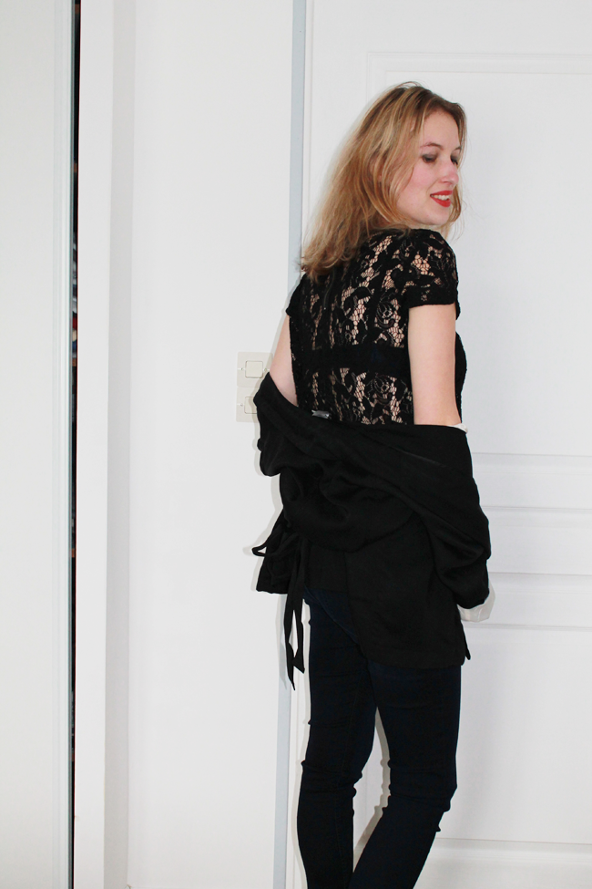 Idéalement, je voulais vous présenter ce look la semaine prochaine pour la Saint Valentin, mais je suis tellement impatiente que j’ai décidé de vous le présenter aujourd’hui. Comme beaucoup de femmes, j’aime beaucoup la dentelle vous avez déjà pu le remarquer à plusieurs reprises sur le blog. Habituellement, je porte toujours un petit débardeur lorsque le top est transparent et puis ce dimanche je ne saurais trop vous dire pour quelles raisons j’ai osé la transparence.