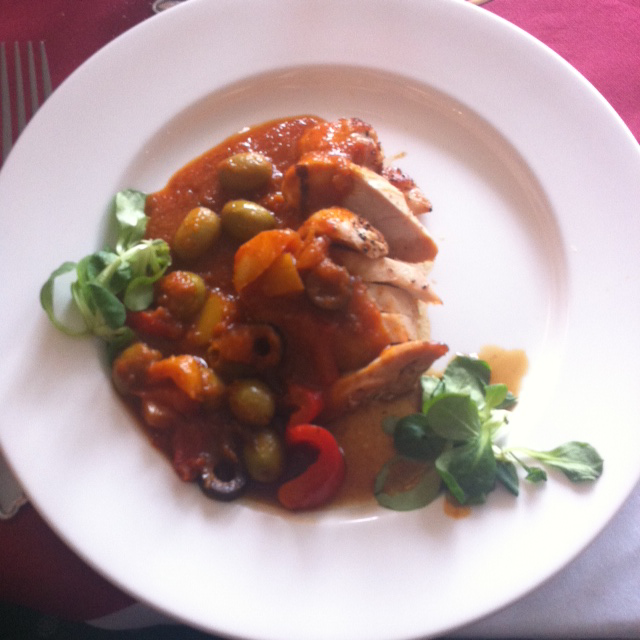 En plat, j’ai choisi le poulet accompagné de légumes. Un peu déçue par ce plat et la présentation. Le goût y était mais l’assiette ne m’a pas transcendé.