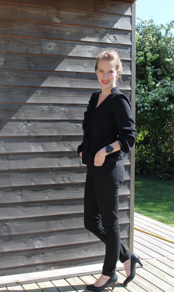 Je porte un chemisier Vero Moda (old), un slim Levis (Collection Actuelle), des escarpins Eram (similaires ici). Côté maquillage, j’ai utilisé mon fond de teint habituel Nocibé, une ombre à paupières Yves Saint Laurent, et mon RAL préféré Revlon.