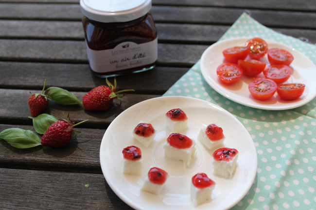 Alors pour lui faire plaisir, j’ai décidé d’imaginer une recette avec des ingrédients qu’il aime et j’ai même réussi à lui faire manger des champignons ! Si vous n’aimez pas la version originale salée, vous apprécierez peut-être cette version revisitée. La tomate et la mozarella ne cachent pas la fraîcheur de la confiture. C’est un délice ;))