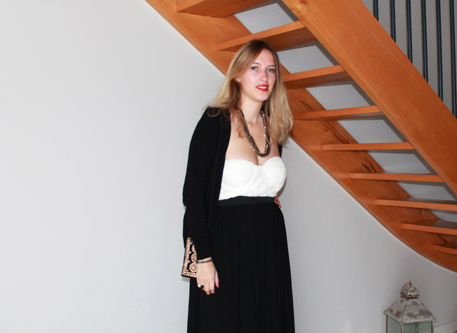 Je suis partie sur l’idée de m’habiller vraiment chic. Chose que je fais que très rarement en soirée puisque je me retrouve souvent la seule habillée vraiment chic, de ce fait je me sens encore plus mal à l’aise. Finalement, en y repensant j’aurai pu penser à une tenue un peu moins chic et plus « portable », je ne sais pas vraiment pourquoi j’ai voulu à tout prix une robe très chic… Pour le prochain défi je serais peut-être plus inspirée..
