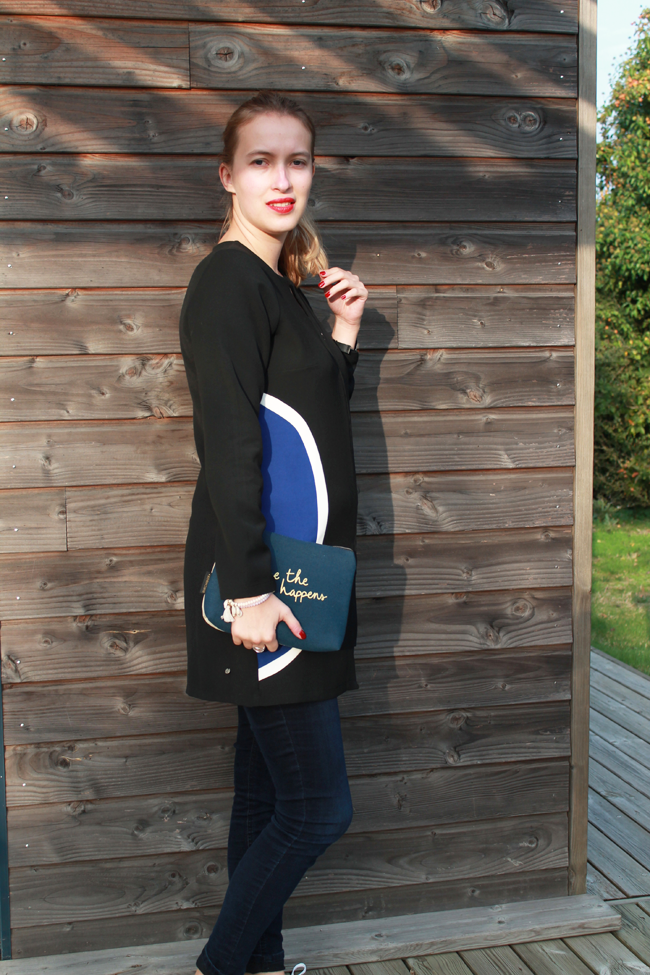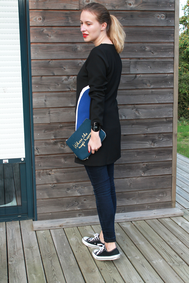 Enfin, ceci n’était pas le sujet de l’article. Ça me fait tellement plaisir de vous retrouver pour un nouveau look après une semaine de reprise bien chargée. Je vous promets que je vais réussir à trouver un rythme et peut-être même perdre mes vilaines cernes. Au moins, vous le savez je vous montre telle que je suis sans artifice. A quoi bon se cacher derrière des choses qui ne nous ressemblent pas ? Ce n’est pas mon but, ici c’est mon espace mais aussi le vôtre. J’espère que vous vous y sentez aussi bien que moi. La mode, c’est un peu ça aussi. On teste des nouveautés et puis, parfois on en revient à ses basiques. C’est un peu un mix des deux dans ce look. Des pièces que vous connaissez par coeur : le skinny, les converses que j’ai associées à une robe/tunique. Elle a un côté un peu sportswear et en même temps elle peut être méga chic. J’espère que ce nouveau look, ce nouveau test en quelque sorte vous plaira. Je vous souhaite une excellente journée à tous.