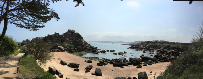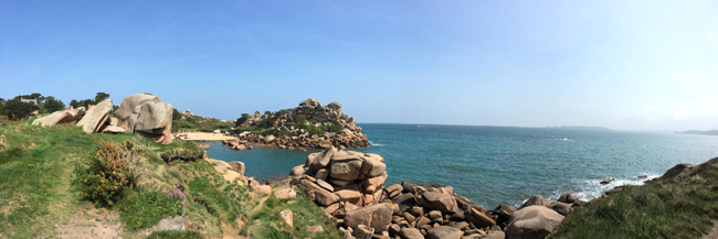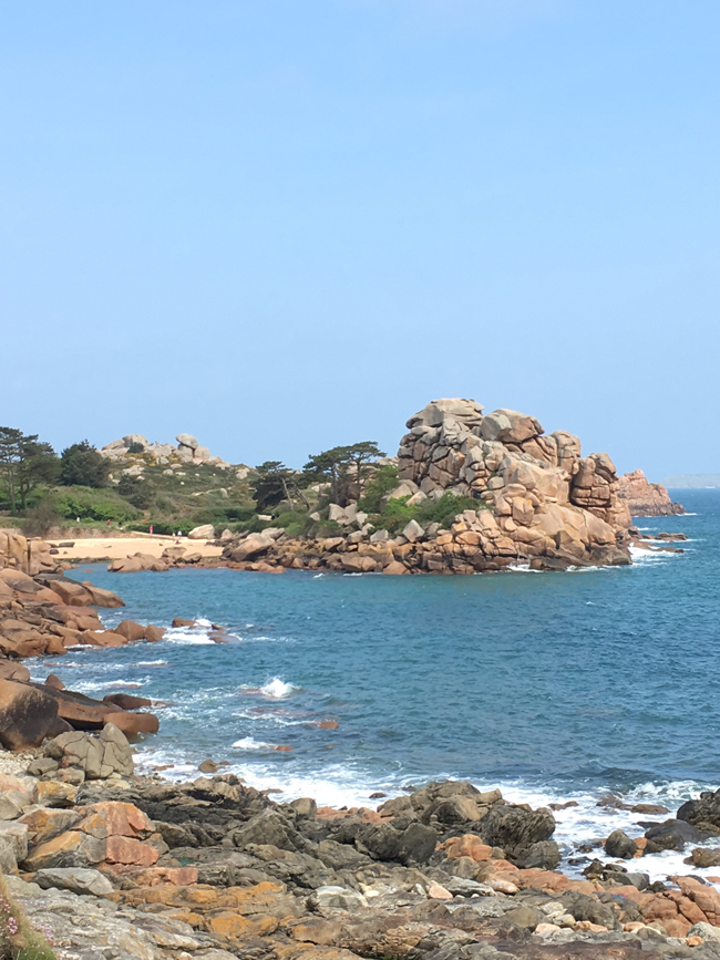 Pour l’histoire, la couleur provient des cristaux de feldspath rose. Les sentiers des douaniers ont été créés sous la Révolution pour surveiller les côtes. Ensuite, ils ont été utilisés pour lutter contre la contrebande jusqu’au XXème siècle puis ont été abandonnés petit à petit. A partir de 1976, les habitants ont été invités à redécouvrir ces sentiers le long du littoral.