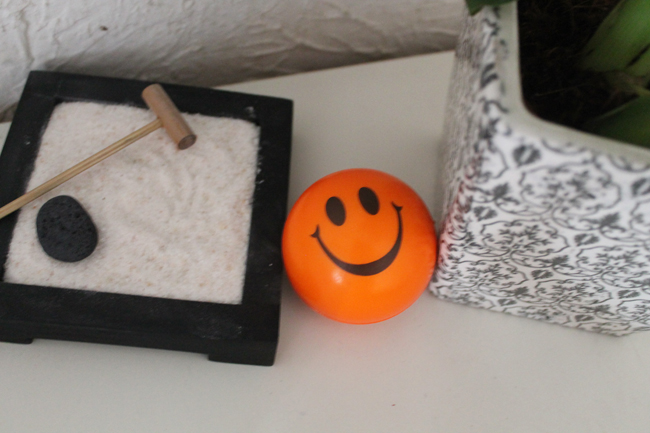 - S’accorder des pauses détente et relaxation : pour cela, équipez-vous d’une balle anti stress et d’une bonne boisson