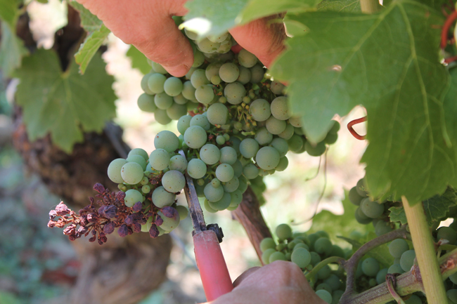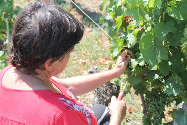 Autour du 15 août, les raisins commencent à changer de couleurs : de rose pâle à rose plus foncé, ils passent à rouge voire bleu noirâtre. Début septembre, commencent les prélèvements dans la vigne. Le raisin est alors apporté au laboratoire oenologique pour vérifier, le goût, l’acidité etc. C’est l’oenologue qui déterminera la date des vendanges.