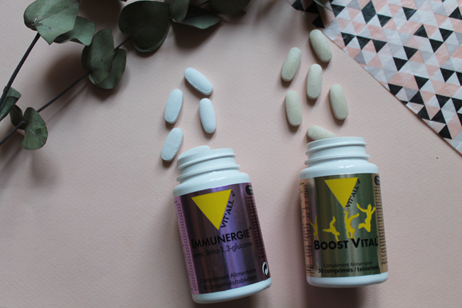 Chaque hiver je fais au moins une cure de Bion3, des comprimés enrichis en vitamines et minéraux. Et puis cette année, j’ai testé deux nouveaux produits de la marque Vit’All+. Lorsqu’ils m’ont contacté en septembre dernier, j’ai demandé à Laurie deux produits pour garder la pêche lors des coups de mou de l’hiver.