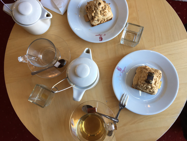 Sur cette photo, nous avions toutes les deux opté pour un gâteau au café avec un peu de meringue sur le dessus, une crème à l’intérieur et une base de biscuit craquant.. Rien que de l’écrire, ça me met l’eau à la bouche.