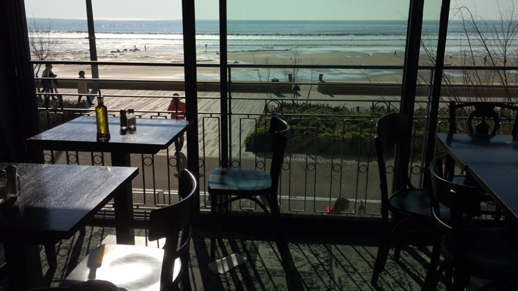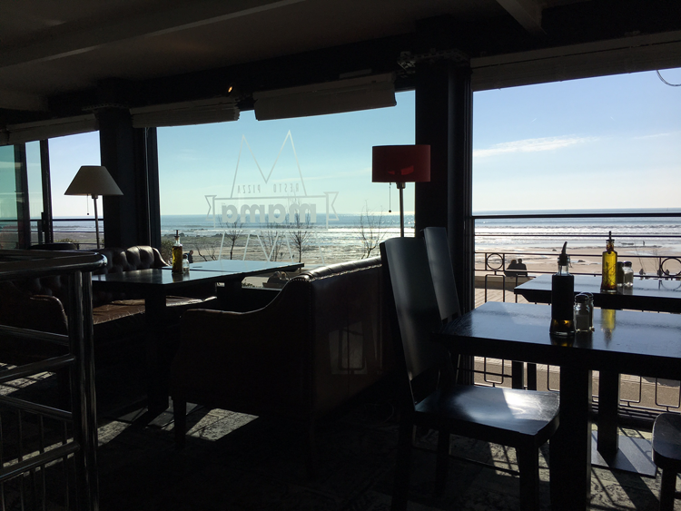 Coup de chance, nous sommes installées à l’étage, on peut donc profiter de la vue sur mer. Un vrai luxe en plein mois de février, grâce au beau temps du jour. Je vous conseille d’ailleurs de réserver avant de venir et de demander directement l’endroit où vous aimeriez être.