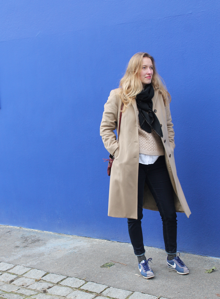 Pour le reste, j’ai repris mes basiques mon long manteau Benetton, une chemise en voile de coton Leon & Harper, mon pull doudou Andy & Lucy, des chaussettes à paillettes Becksöndergaard, une écharpe Galeries Lafayette, des bracelets by Clo, un sac sans marque et des baskets Nike Cortez.