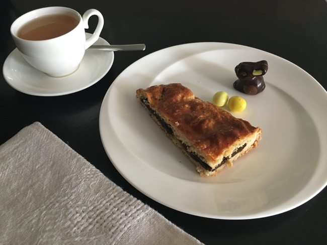Conseil : Déguster la galette de Pâques le lendemain en l’accompagnant d’un thé à la bergamote.