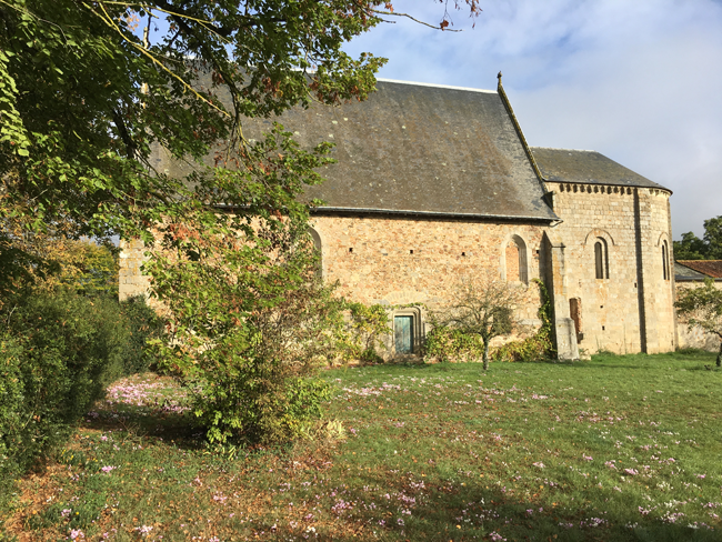 La chapelle conserve une très belle fresque classée du XIème siècle, de style roman, avec une touche byzantine. Ce Christ en majesté est considéré comme le plus grand du Poitou-Charentes. il est entouré des quatre évangélistes dans leurs représentations symboliques, l’homme, le lion, le boeuf et l’aigle. aujourd’hui que des remparts et la chapelle Saint Georges.