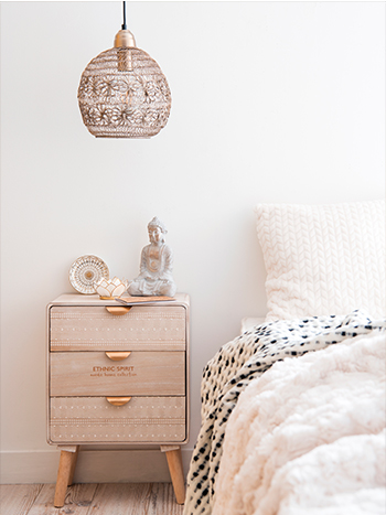 Boîte ronde en verre teinté 12,99€ ici / Mini cache pots à motifs 7,99€ ici / Pouf tressé 49,99€ ici / Miroir triptyque 64,99€ ici / Echelle déco 39,99€ ici / Assiette creuse 13,98€ ici