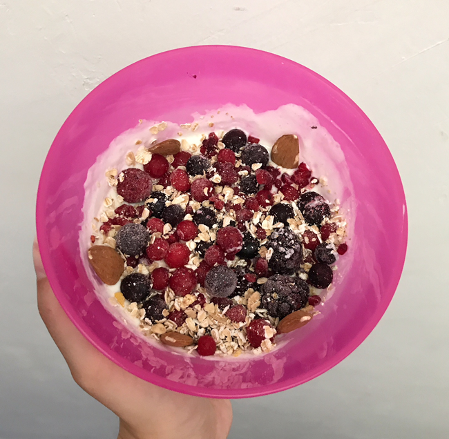 Chaque matin je me suis préparée un bol avec les deux dosettes de MCT Powder, un peu de fromage blanc et quelques fruits rouges. Selon mes envies, je pouvais ajouter quelques graines de chia, une poignée d’amendes, quelques copeaux de noix de coco râpée, etc..