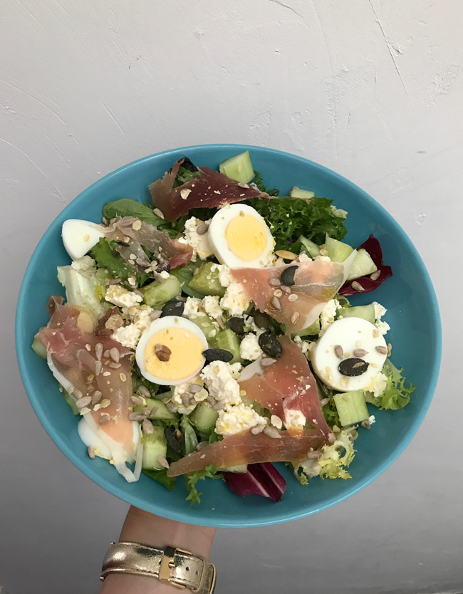 Le midi et le soir, j’ai souvent mangé des salades ou bien de la viande avec des légumes en évitant au maximum les féculents. Etant donné que j’en ai à terminer, j’ai fait quelques exceptions avec le quinoa ou le boulgour ou le riz complet.