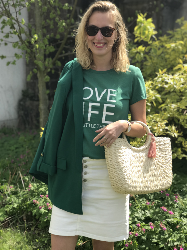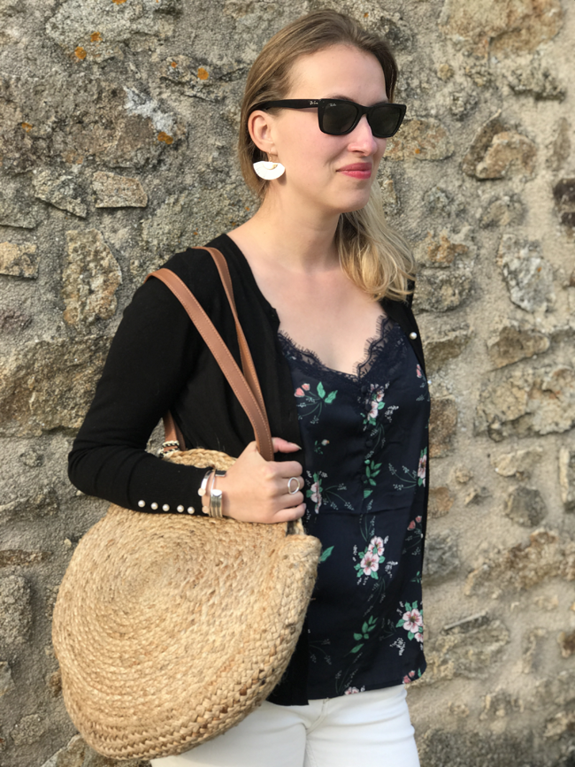 Le sac en paille est super tendance et je les adores ! J’aime les couleurs naturelles ! Mais j’ai une peur un peu débile de voir mes vêtement s’abîmer à ce contact, le frottement… :D